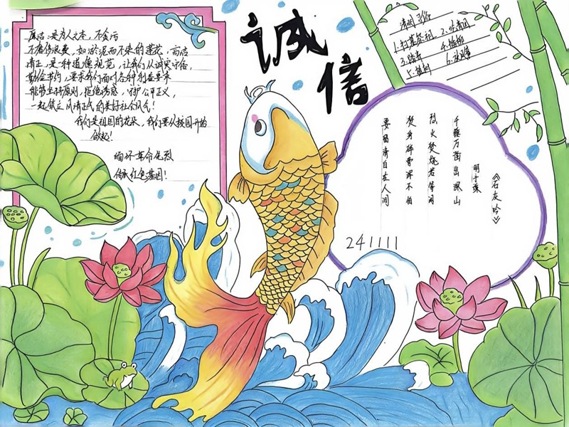 学院高度重视本次活动,通过召开诚信主题班会、举办诚信主题手抄报创作等多种形式,全面解读学生资助政策,细致讲解助学金申请流程与评审规范,帮助学生明晰资助政策内涵与意义,深刻理解“受助”与“诚信”的内在联系。活动期间,全院学生积极参与、热情高涨,围绕资助政策、诚信内涵、感恩励志等主题,精心创作了一批主题鲜明、内容充实、形式新颖的手抄报作品。同学们将对诚信的理解、对资助政策的认知融入笔墨与图案,以生动文字、精美画面抒发内心感悟,在创作中深化诚信认知,在实践中践行诚信准则。