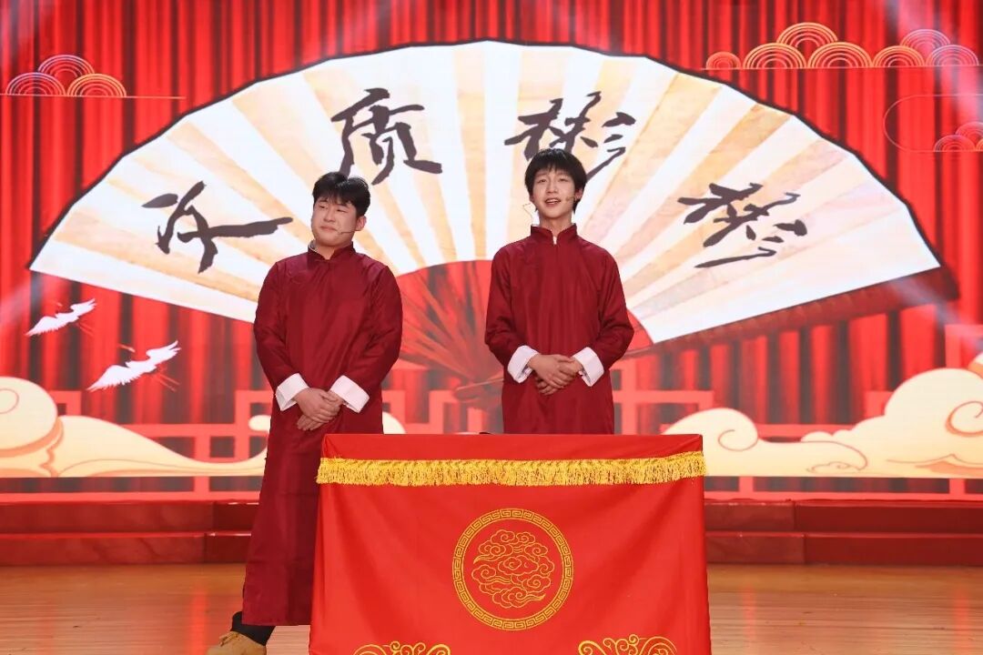 颁奖仪式后,迎新年文艺晚会正式拉开帷幕。整场演出围绕“青春启航·奋进新程”“文脉传承·时代新声”“家国情怀·使命担当”“同心筑梦·强国有我”四大篇章徐徐展开,融合舞蹈、合唱、情景剧、戏曲、音诗画、相声等多种艺术形式,为全校师生呈现了一场视听交融、情理交织的文化盛宴。