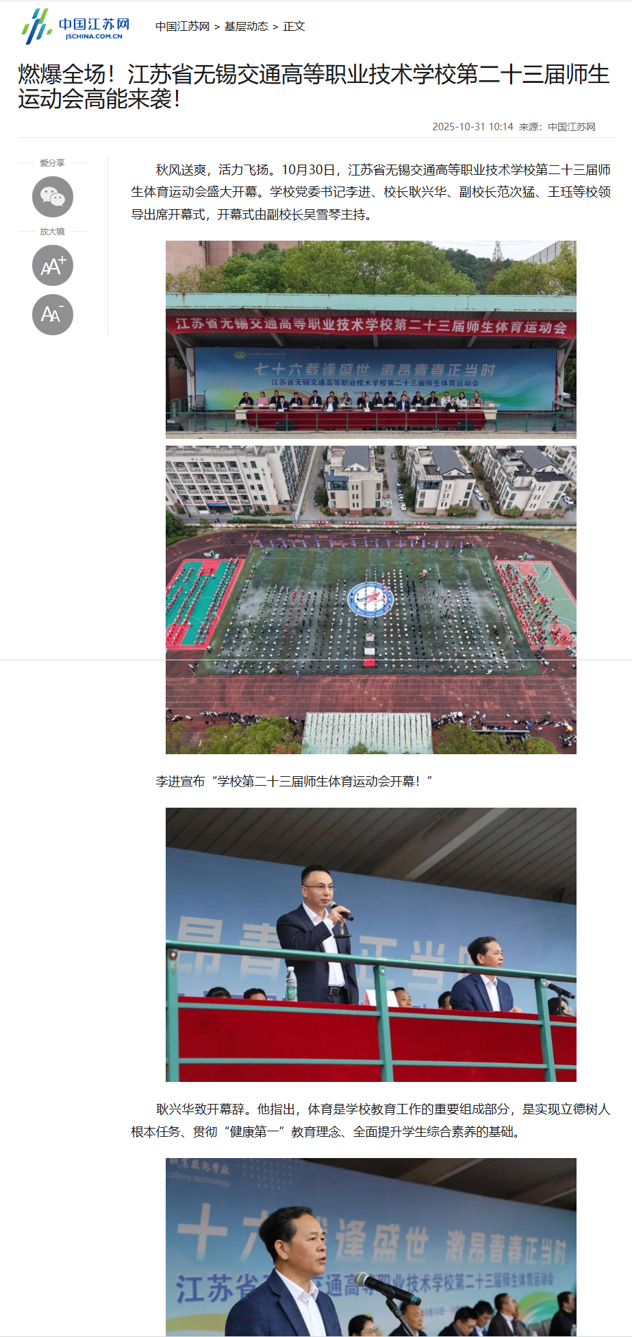 燃爆全场!江苏省无锡交通高等职业技术学校第二十三届师生运动会高能来袭!_中国江苏网