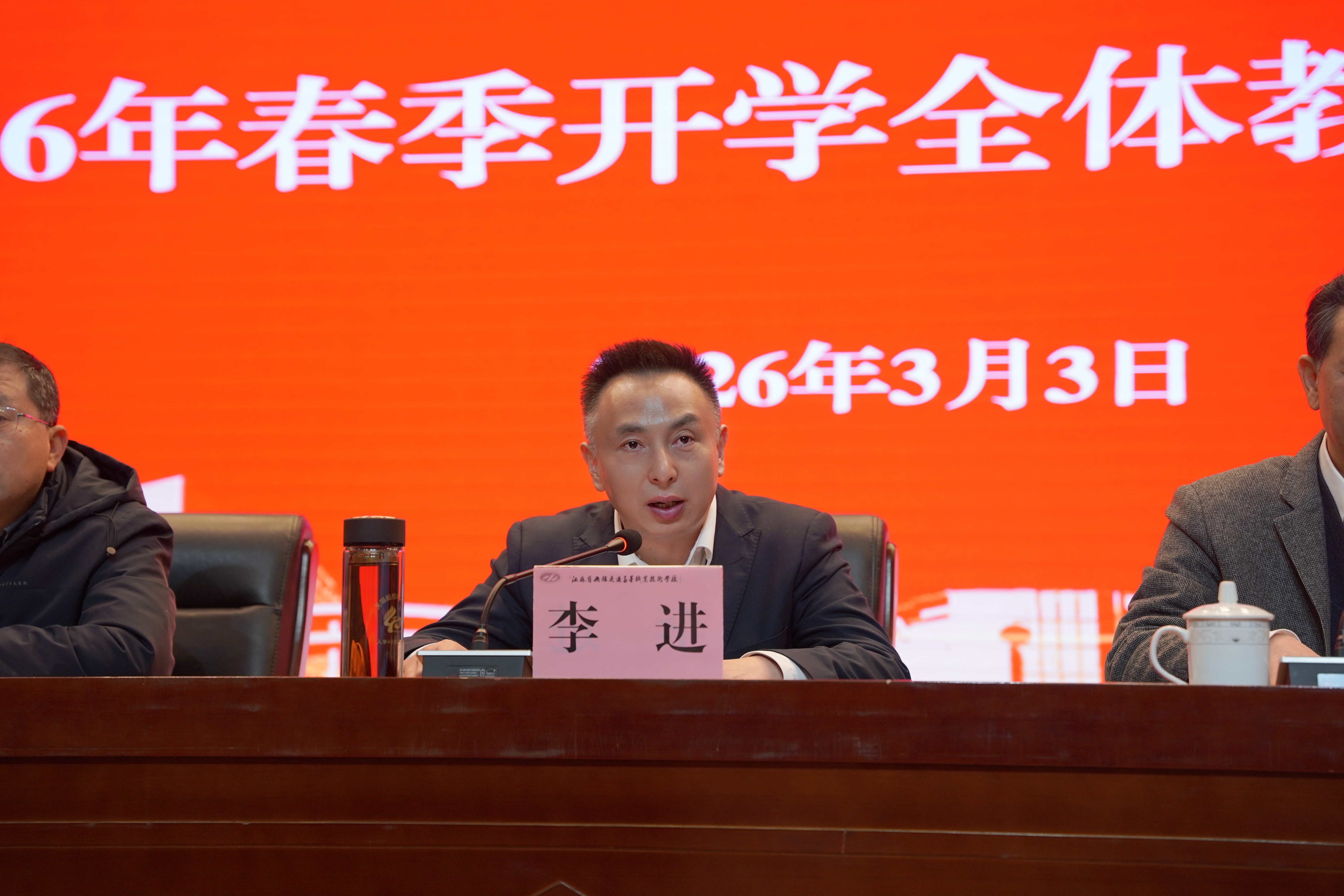 大会强调,2026年是学校高质量发展关键之年,职业教育迎来新机遇。新学期学校将以“提质培优、内涵发展”为主线,聚焦专业建设、健康学校建设等核心工作。李进向全体教职工提出三点希望:一是坚守育人初心,带着“情怀”教书,铸牢为党育人为国育才的根本,把培养健康的高技能人才贯穿教育教学全过程;二是勤学善思笃行,带着“本领”前行,紧跟职业教育高质量发展的步伐,提升服务学生、服务社会的能力;三是严守底线规矩,带着“正气”立身,树立新时代人民教师的良好形象,做学生健康成长的榜样示范。