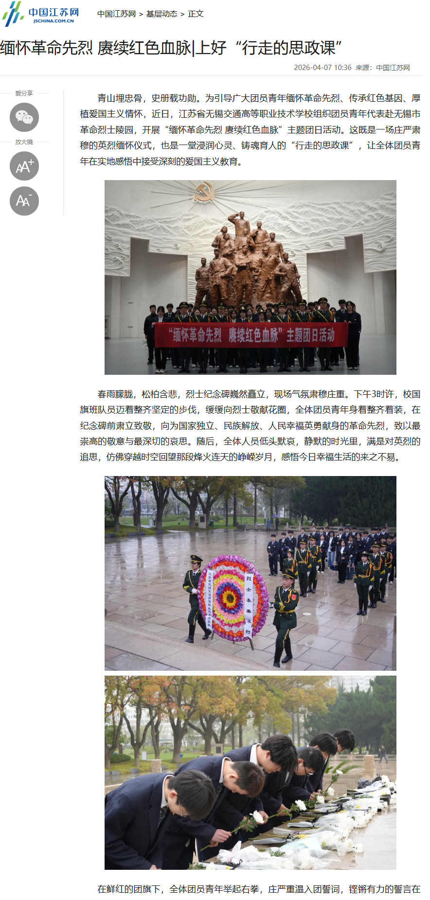 缅怀革命先烈 赓续红色血脉|上好“行走的思政课”_中国江苏网