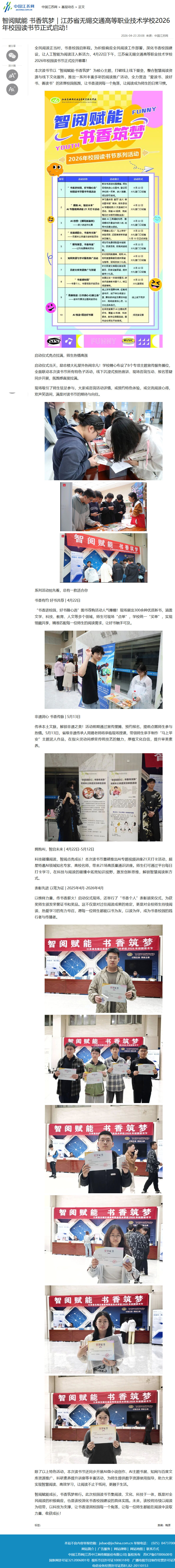 中江网:智阅赋能 书香筑梦|江苏省无锡交通高等职业技术学校2026年校园读书节正式启动!