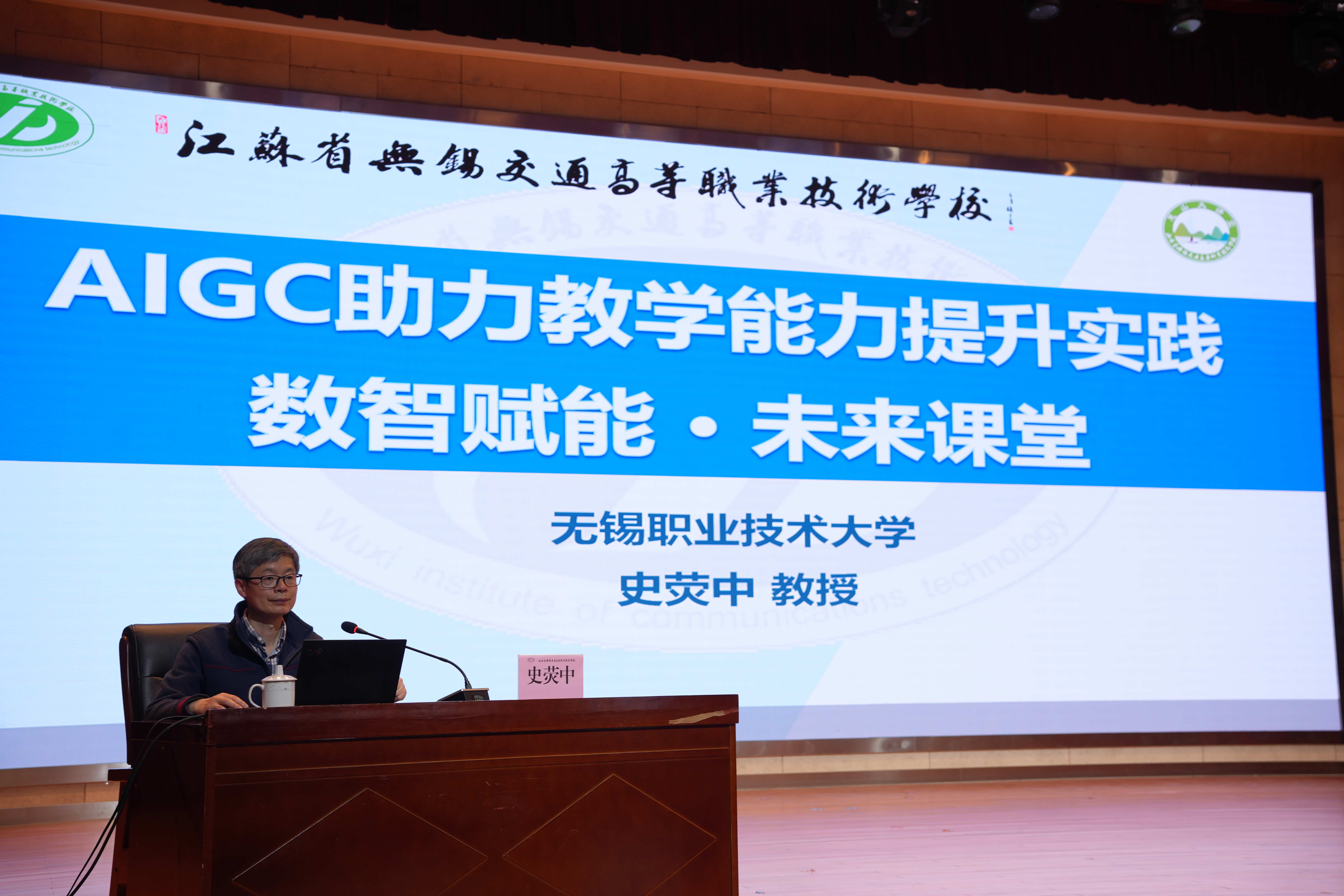 本次培训特邀无锡职业技术大学史荧中教授作专题讲座。史教授围绕AIGC赋能教育教学改革主线,从AIGC发展内涵、常用智能工具实操、文本创作辅助、图像与视频生成、教学创新应用、智能体开发实践等多个维度,进行系统讲解与案例演示,内容兼具理论高度、实践深度与操作广度,贴合职业教育课堂改革实际需求,为教师提供可直接用于课堂的工具与方法,有效拓宽了教师运用 AIGC 提质增效的思路。