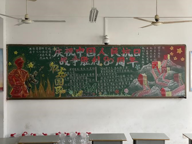 今日,江苏省无锡交通高等职业技术学校机电工程学院的25级新生教室内焕新出彩,一幅幅主题鲜明的黑板报凝聚了新生们的心血,以“庆祝中国人民抗日战争胜利80周年”为统一主题的视觉教育阵地正式亮相,成为校园内一道厚重而鲜活的红色风景线。