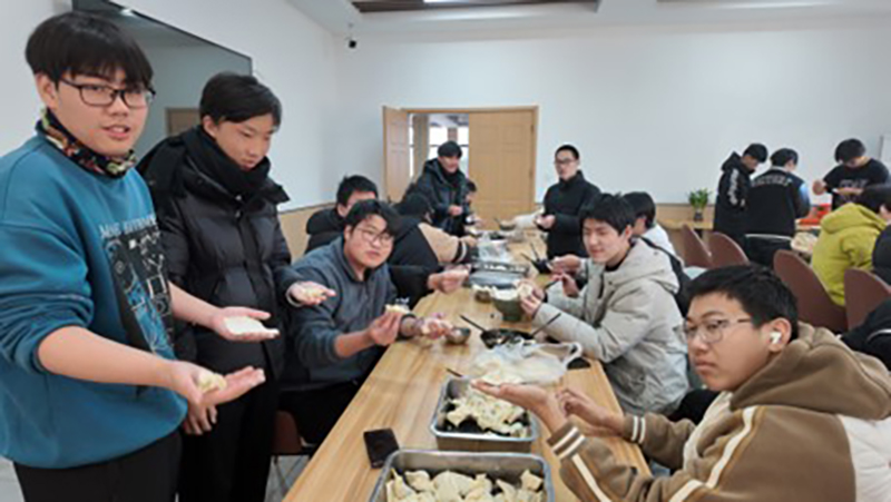 经过半个小时的忙碌,一排排形态各异、饱满可爱的饺子整齐地摆放在托盘里。随后,食堂工作人员将同学们包好的饺子分批下锅蒸煮。当热气腾腾的饺子端上桌时,浓郁的香气扑面而来,同学们迫不及待地品尝着自己的劳动成果,每一口都充满了满足感。大家一边吃着饺子,一边互相点赞,现场洋溢着团圆的喜悦。