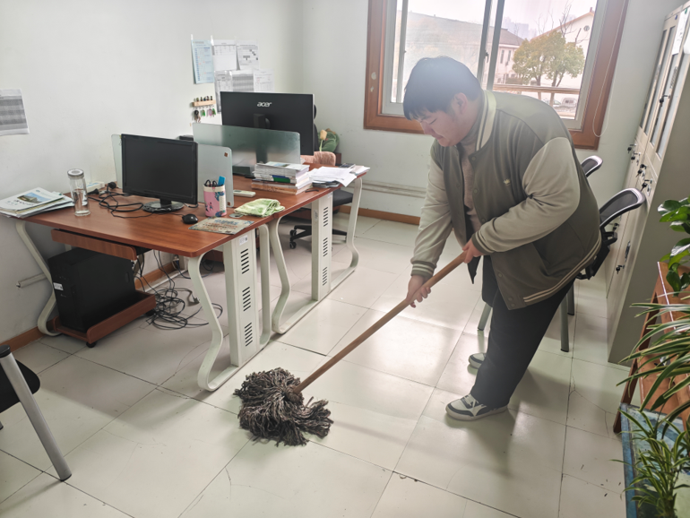 活动开始前,老师明确了分工、强调了安全与劳动要求。同学们积极响应,自带抹布、扫帚、垃圾桶等工具,有序进入办公室开展清洁工作。大家分工合作、配合默契,有的擦拭窗台、办公桌和柜子,有的整理桌面物品,有的认真清扫地面、清理角落垃圾。同学们不怕脏、不怕累,以饱满的热情投入劳动,用实际行动诠释雷锋精神。