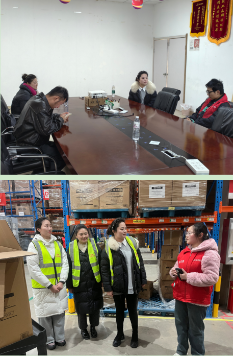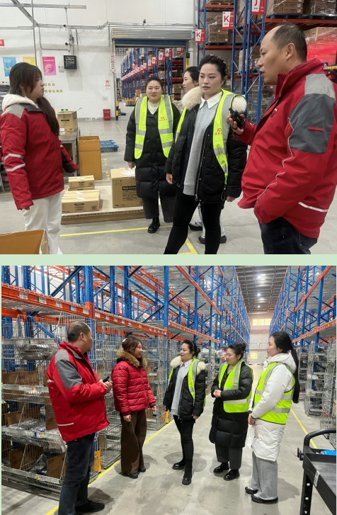 座谈结束后,在无锡京东宇培物流园相关负责人的带领下,学院走访团队实地察看了学生的工作环境,详细了解了企业的运营模式、岗位设置及对实习学生的培养管理体系。在分拣中心、仓储库区等工作现场,孙霞副书记逐一与实习学子亲切交谈,细致询问他们的工作内容、适应情况、薪资待遇及生活保障等问题,耐心倾听学生在实习过程中的收获与困惑。