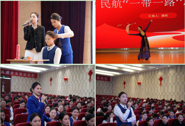 《从“青春饭”到“终身事业”》——李佳玉老师用亲身经历打破职业误区,筑牢“深耕行业、终身热爱”的信念根基;《民航发展史与民族复兴之路》——吴依霖老师串联行业崛起与国家复兴,上海航空刘程学长现场拆解面试技巧,让情怀落地实践;《航空强国战略与当代青年担当》——邵庭煖老师解读国家战略,激发学子“为国担当、为业奋进”的使命意识;《我的飞行第一年》——孙思老师分享成长蜕变,上海吉祥航空孙忆雯学姐倾囊相授职场秘籍,助力学子明晰职业路径;《“一带一路”航线中的文化传播》——潘辰老师讲述跨文化交流故事,凸显民航人“连接世界、传扬文化”的特殊使命;《文化自信与职业形象塑造》——韩子晨老师聚焦服务细节与工匠精神,指引学子实现专业技能与内在素养双重提升。