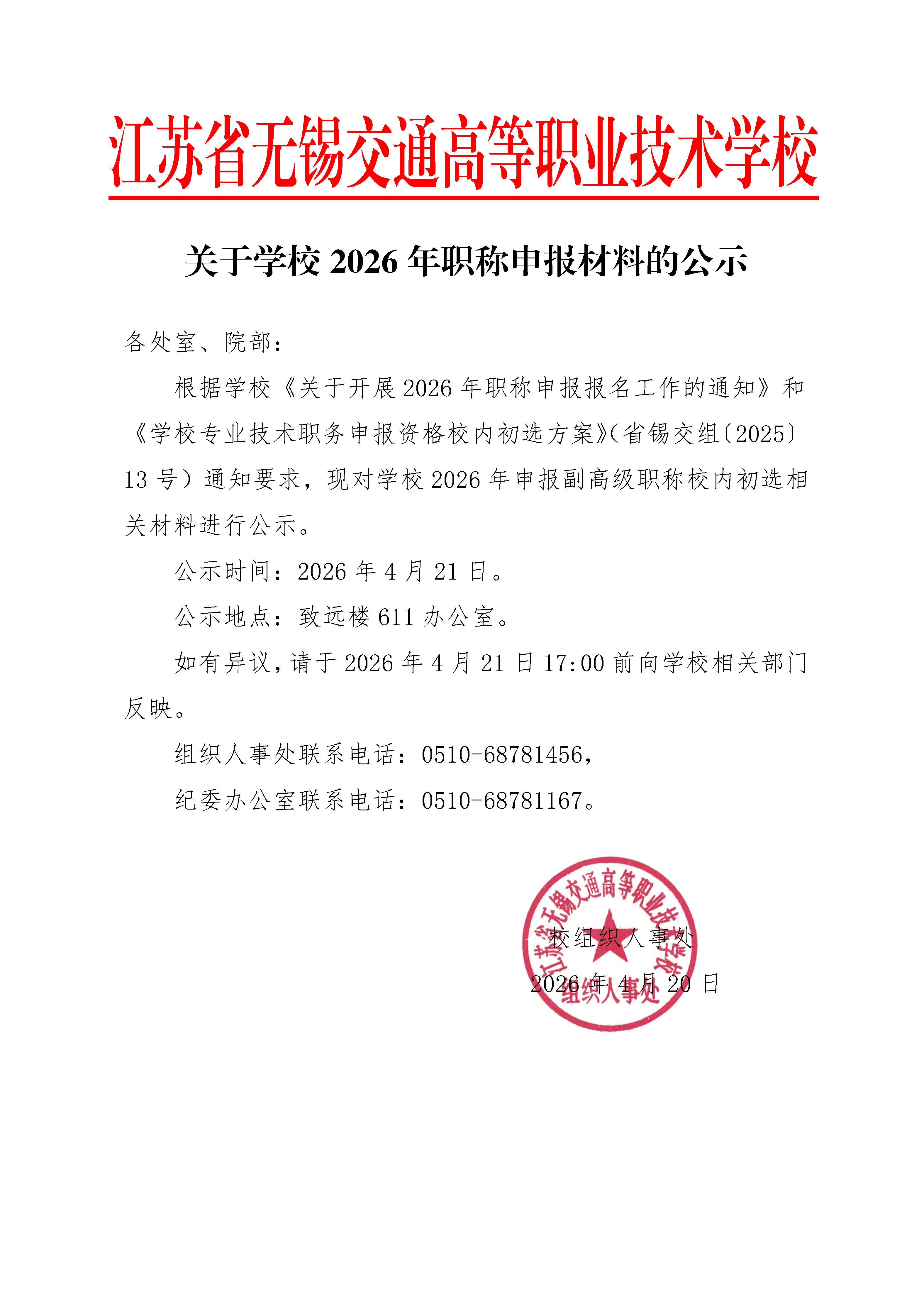 关于学校2026年职称申报材料的公示