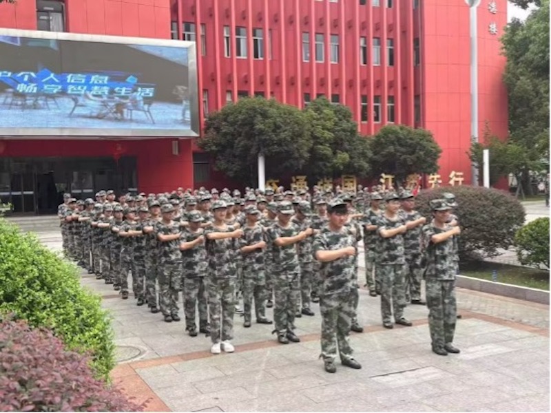 “挺胸抬头,手臂贴紧,目光向前!”训练场上,教官指令铿锵有力,新生们神情专注、动作有力。从站军姿到齐步走,从稍息立正到正步训练,每一个动作都经过反复打磨。教官通过“一对一纠正”“分组比拼”等方式耐心指导,帮助学生掌握动作要领。各连队训练成效初显,整齐的队列、统一的步伐,成为校园中一道昂扬的风景线。