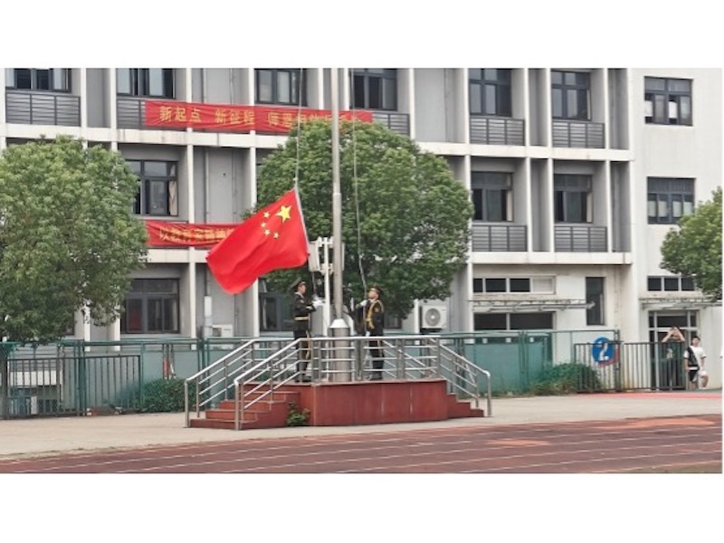 仪式在庄严的国歌声中拉开帷幕。英姿飒爽的国旗班队员迈着铿锵有力的步伐,护卫五星红旗入场。伴随着雄壮的《义勇军进行曲》,鲜艳的国旗冉冉升起,全体师生肃立行注目礼,场面庄重肃穆。