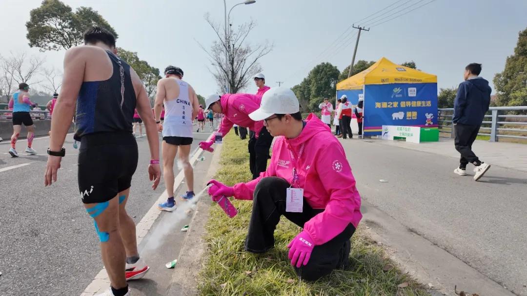 随着发令枪响,3.5万名跑者踏风开跑,各服务岗位随即进入忙碌状态。递水、呐喊、拉伸、记录…… 面对跑者的各类需求,志愿者们始终热情响应、高效服务,用真诚的微笑传递温暖,用扎实的行动诠释青年担当。