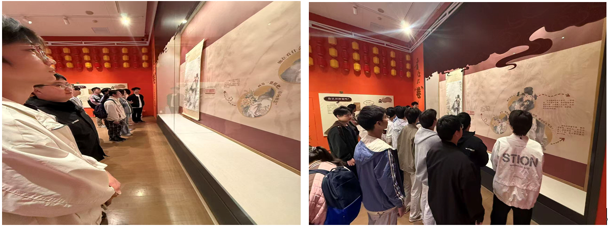 在博物院门前,同学们整齐列队合影,以青春风貌定格研学初心。随后,大家跟随讲解员有序参观展厅,沉浸式感受吴地文明的厚重底蕴与艺术魅力。在书画特展中,同学们驻足于珍贵展品前,认真聆听讲解,细细品读笔墨间的文化内涵,在与历史对话中深化对中华优秀传统文化的理解。